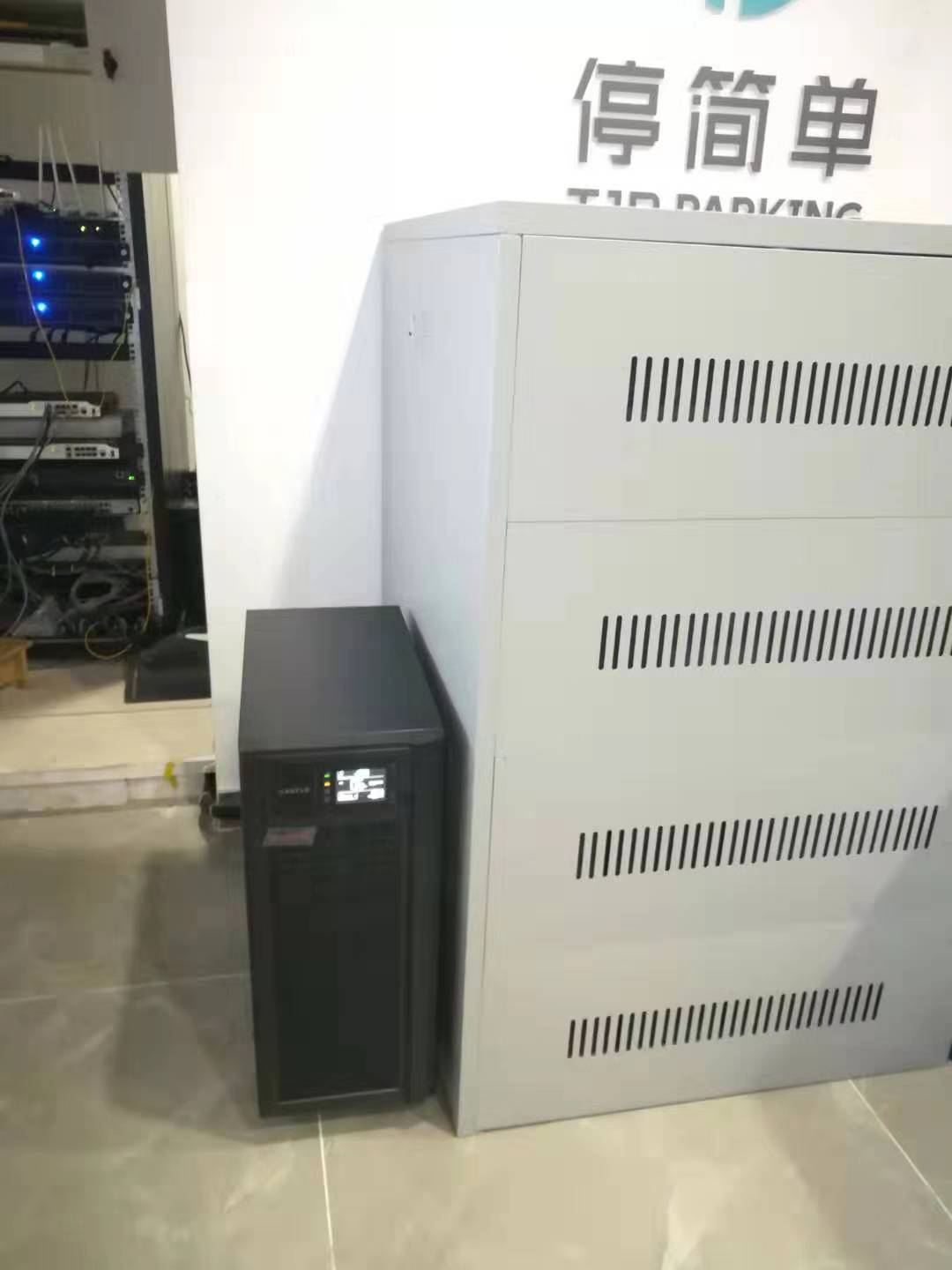 我公司为北京停简单公司机房配备了深圳山特UPS电源3C15KS及德国京安特蓄电池12V100AH32只,主要应用于电力系统瘫痪后,保证高压配电切换时照明回路正常照明。